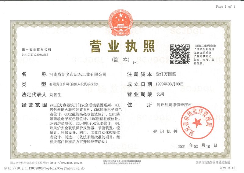 河南省新鄉(xiāng)市啟東工業(yè)有限公司始建于1987年,是專注研發(fā)、生產(chǎn)自動(dòng)化儀器儀表(主要與壓力容器、鍋爐等容器配套使用)的廠家。主要產(chǎn)品有液位計(jì)(磁敏雙色型、磁翻柱型等)系列、烤包器熄火聯(lián)控裝置系列、壓力容器快開門安全聯(lián)鎖保護(hù)裝置系列、鍋爐報(bào)警器系列。二十多年來,公司產(chǎn)品暢銷國內(nèi)并遠(yuǎn)銷俄羅斯、蒙古與東南亞,深得廣大用戶的信賴和好評(píng)。我們多年來致力于自動(dòng)化儀器儀表的研制生產(chǎn),公司現(xiàn)具有完善的生產(chǎn)、試驗(yàn)、檢測(cè)手段和設(shè)備。科技創(chuàng)新、誠信服務(wù),是我們不變的經(jīng)營(yíng)理念,我們將以強(qiáng)有力的技術(shù)支持及售后竭誠為客戶提供良好的服務(wù)。  2012年我公司成功研發(fā)了KCL系列烤包器熄火聯(lián)控裝置,并于2013年2月2日榮獲中華人民共和國國家知識(shí)產(chǎn)權(quán)局辦法的《實(shí)用新型**證書》<**號(hào):2021202257735>該產(chǎn)品廣泛應(yīng)用于唐鋼等大型鋼鐵企業(yè),為烤包器安全作業(yè)提供了有力的保障。  2002年我公司成功研發(fā)磁敏電子雙色液位計(jì)獨(dú)特的高亮度LED紅綠雙色顯示,獲得了專家的首肯和用戶的一致好評(píng)。在此基礎(chǔ)上我公司研發(fā)人員十年磨一劍,致力于XQFB-1防爆型磁敏雙色液位計(jì)的研發(fā),于2013年12月27日由國家防爆電器產(chǎn)品質(zhì)量監(jiān)督檢驗(yàn)中心檢驗(yàn)合格并頒發(fā)防爆合格證書<編號(hào):cnex19.0883>。該產(chǎn)品性能得到了充分的發(fā)揮,廣泛應(yīng)用于含有Ⅱ類A·B級(jí)T1-T4組可燃?xì)怏w或蒸汽與空氣混合形成的爆炸性混合物的0區(qū)、1區(qū)危險(xiǎn)場(chǎng)所。連接用戶DCS或PLC系統(tǒng)實(shí)現(xiàn)遠(yuǎn)距離集中顯示和控制,從而實(shí)現(xiàn)節(jié)能、數(shù)字化管理。為用戶增加了一定的經(jīng)濟(jì)效益和社會(huì)效益,。2014年公司成功申請(qǐng)了夢(mèng)潤(rùn)儀表的logo,新的品牌新的形象,夢(mèng)潤(rùn)儀表是啟東的LOGO, 歡迎新老用戶前來洽談合作。  我們一如既往地注重科研的投入,憑借產(chǎn)品的不斷更新、加大科技含量,進(jìn)一步拓展市場(chǎng)。我們相信品質(zhì)成就未來,以過硬質(zhì)量、優(yōu)惠價(jià)格、完善的售后服務(wù)熱忱歡迎廣大客戶來我司視察指導(dǎo)、洽談業(yè)務(wù);精誠合作,共創(chuàng)輝煌!